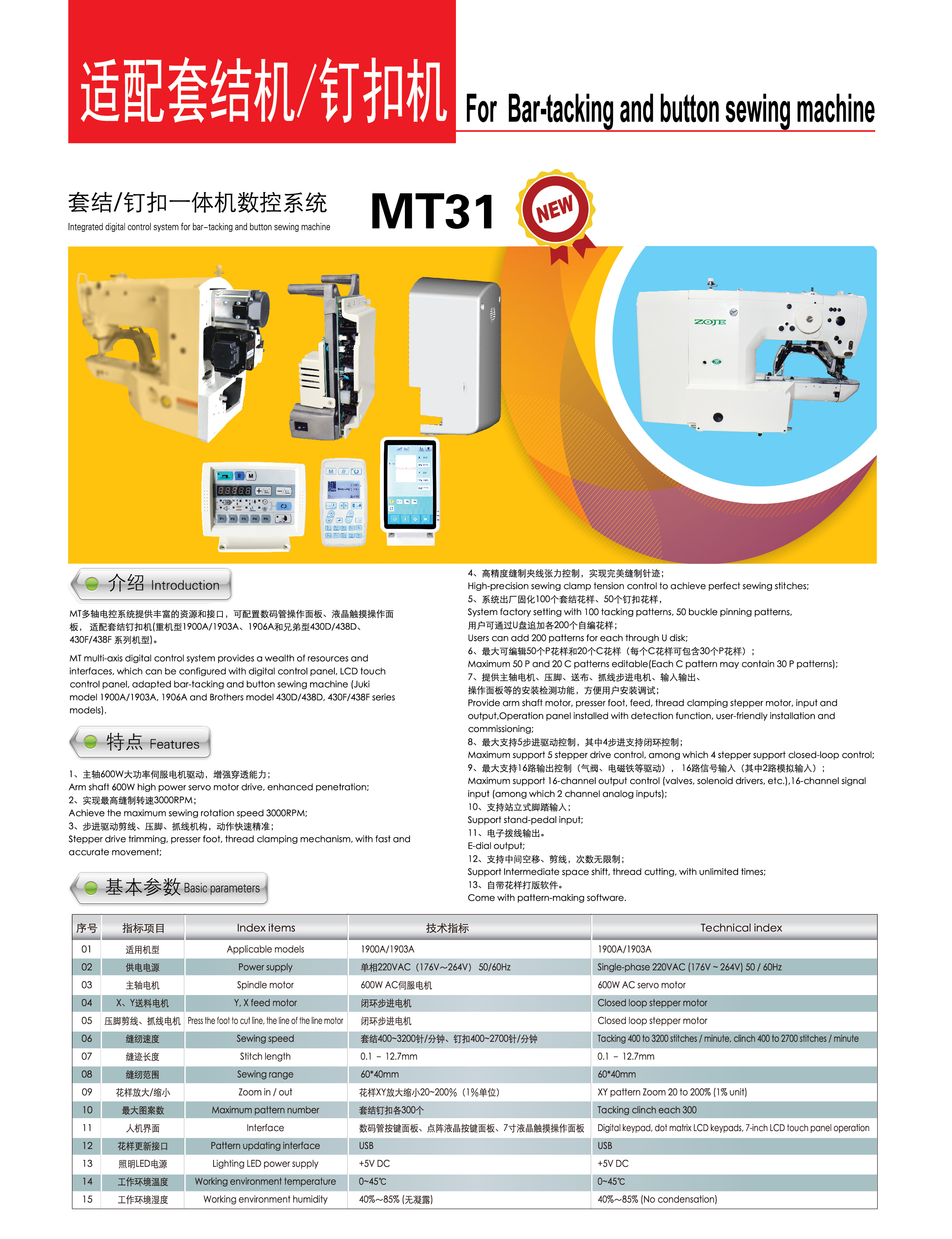 MT23 Closed-loop stepper bar-tacking machine digital control system